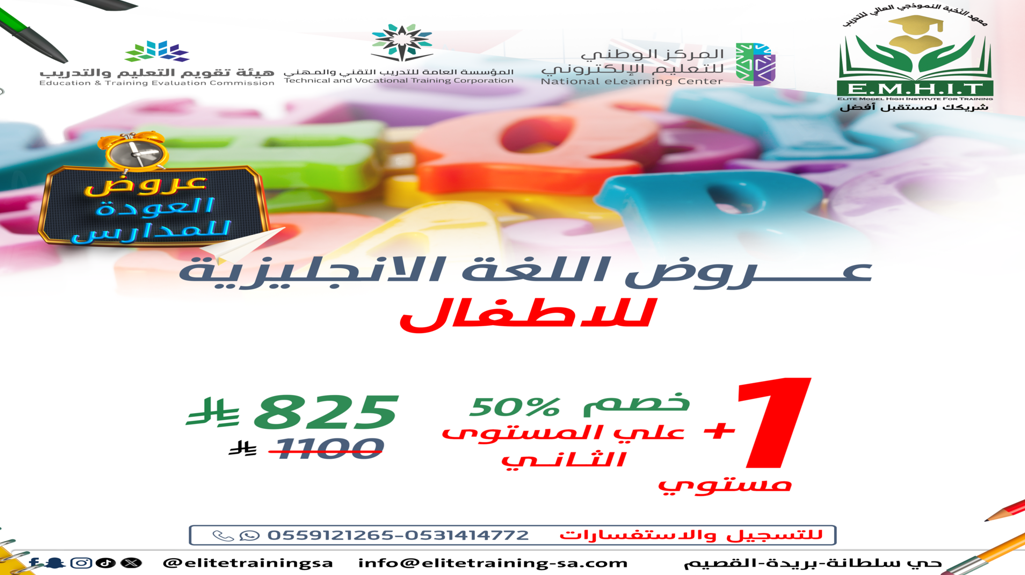 ابدأ من الأساسيات ورفع ثقتك في اللغة الإنجليزية (محادثة، استماع، قراءة، كتابة). يشمل خصم 50% على المستوى الثاني.