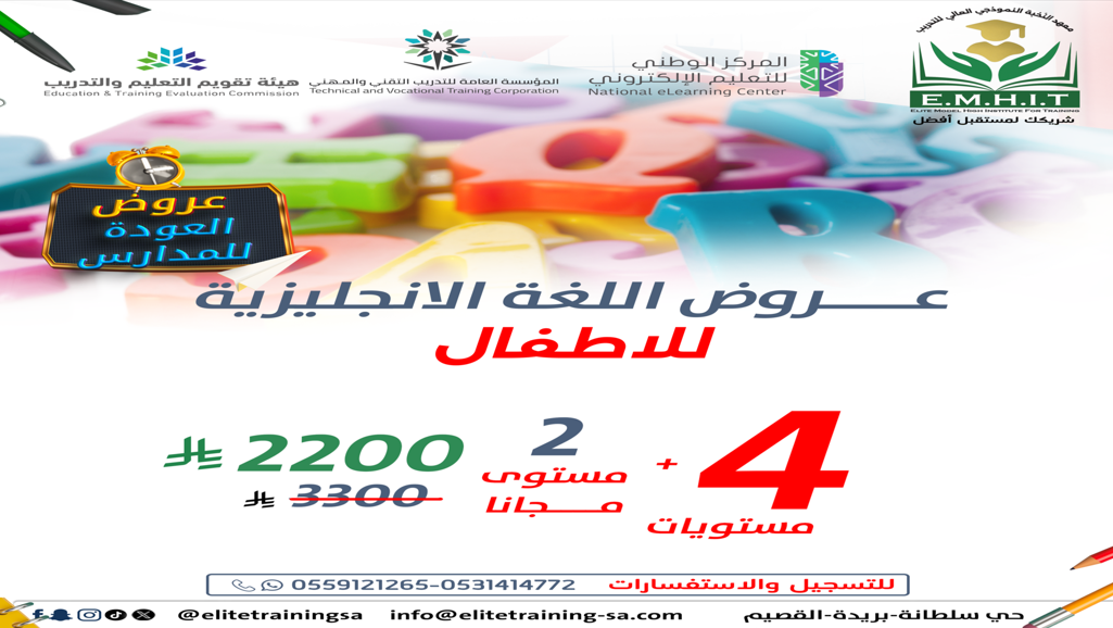 اللغة الإنجليزية للأطفال – باقة مستويين + مستوى مجاني Updated January 2026جميع المستويات . ترجماتباقة منظمة للأطفال تشمل مستويين + مستوى مجاني لتأسيس قوي في المحادثة ..