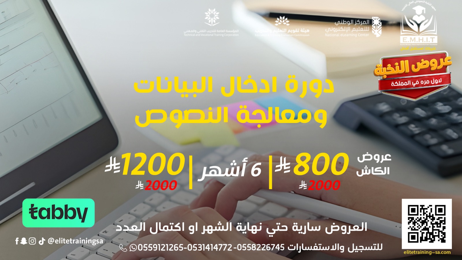 Elite for trainingدورة إدخال البيانات ومعالجة النصوص Updated December 2025جميع المستويات . ترجماتمهارات إدخال البيانات ومعالجة النصوص هي مهارات مطلوبة في العديد من و ..